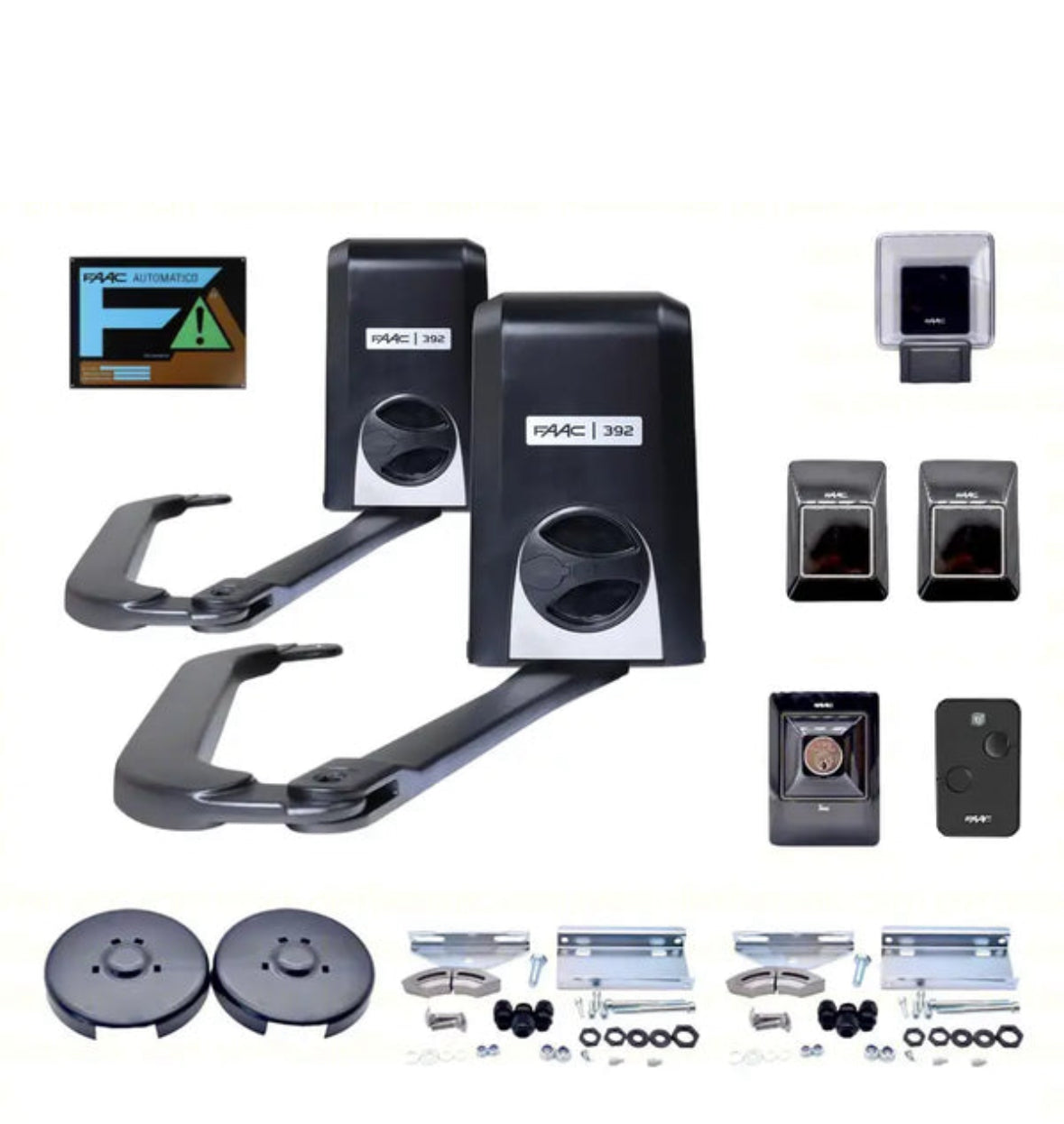 FAAC ENERGY KIT 392 C SAFE este un kit complet de automatizare pentru porti batante rezidentiale, proiectat special pentru porti cu stalpi mari, ziduri late sau situatii unde distanta dintre balama si punctul de prindere al motorului este mare.