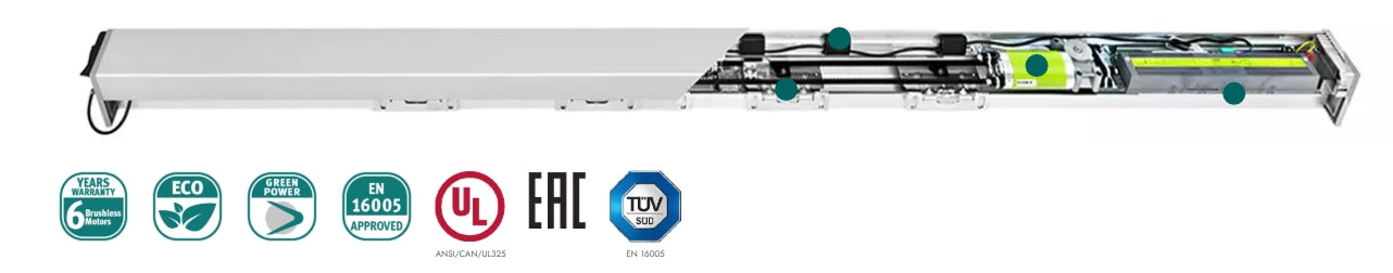 Automatizarea ETERNA 90/1 de la Label este o soluție modernă și fiabilă pentru uși glisante automate în spații comerciale, birouri, clinici sau zone cu trafic intens. Sistemul folosește un motor brushless 24V cu encoder, ceea ce înseamnă funcționare lină, silențioasă și durată mare de viață, cu întreținere minimă.
